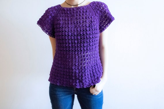 20 Farboptionen Gehakeltes T Shirt Aus Baumwolle Dunkellila Etsy Osterreich
